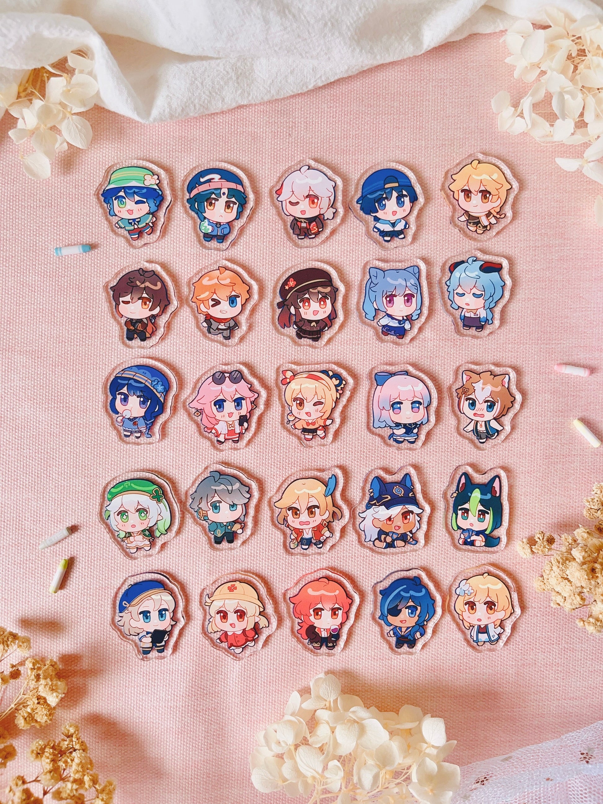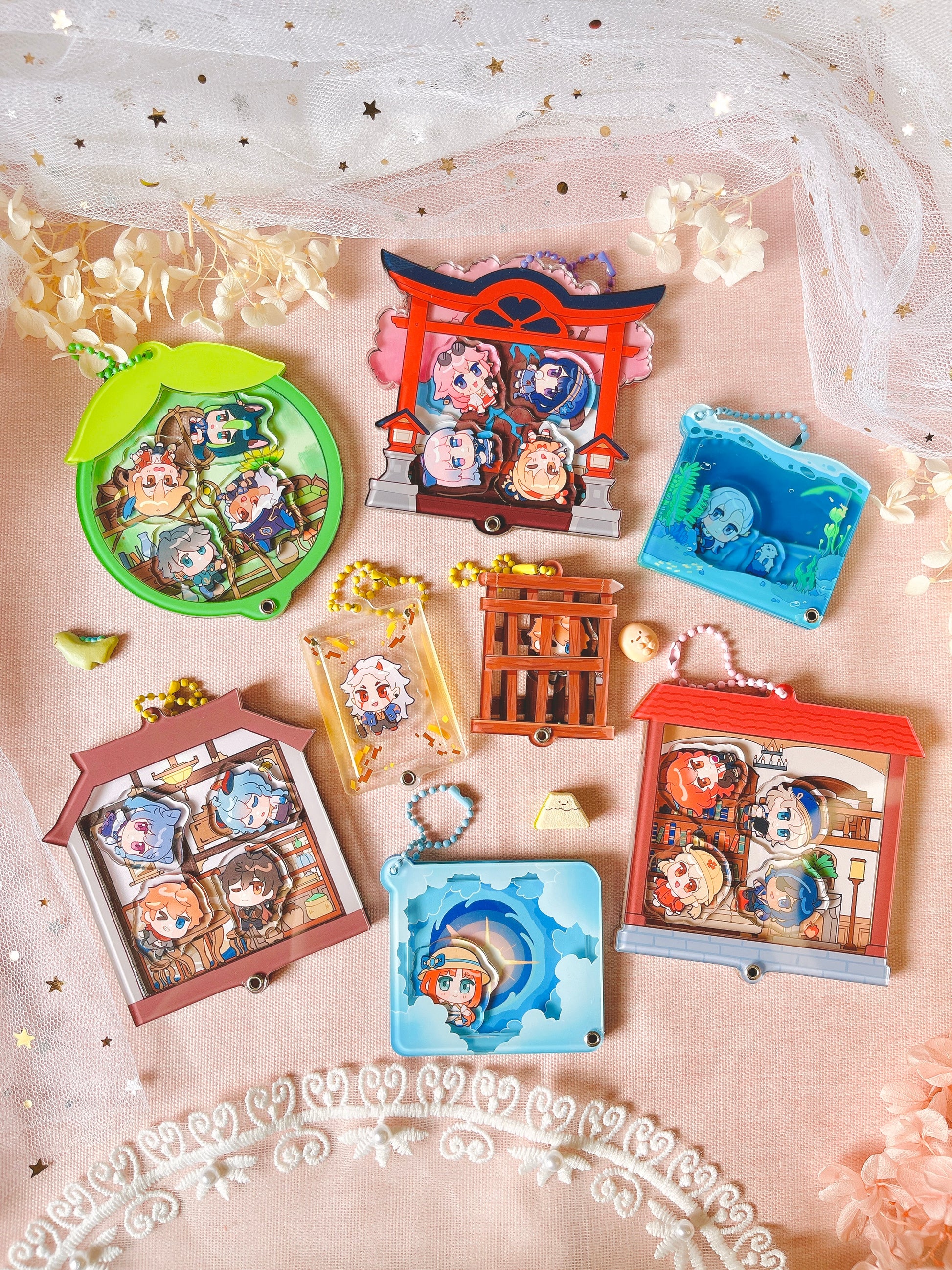 This polly pocket inspired openable shaker charm set features 4 large bases, 2 medium bases, 2 small bases with 45 Genshin characters and 10 companions as shaker pieces to choose from! Pick your favourite characters/companions, put them in your openable base, and shake them!