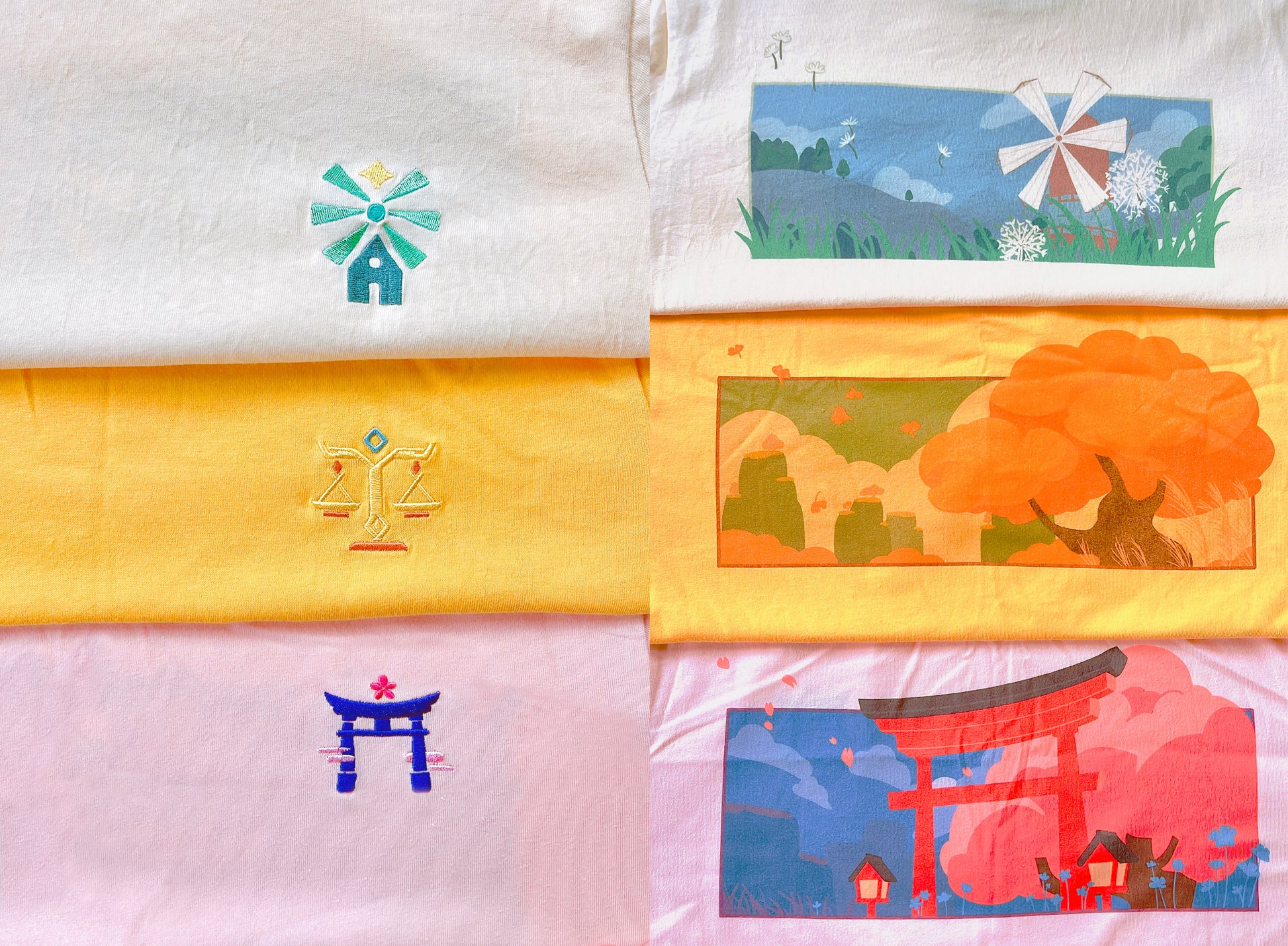 T-shirts are 100% cotton with embroidery on the front logo, with Direct to Garment (DTG) printing on the back.