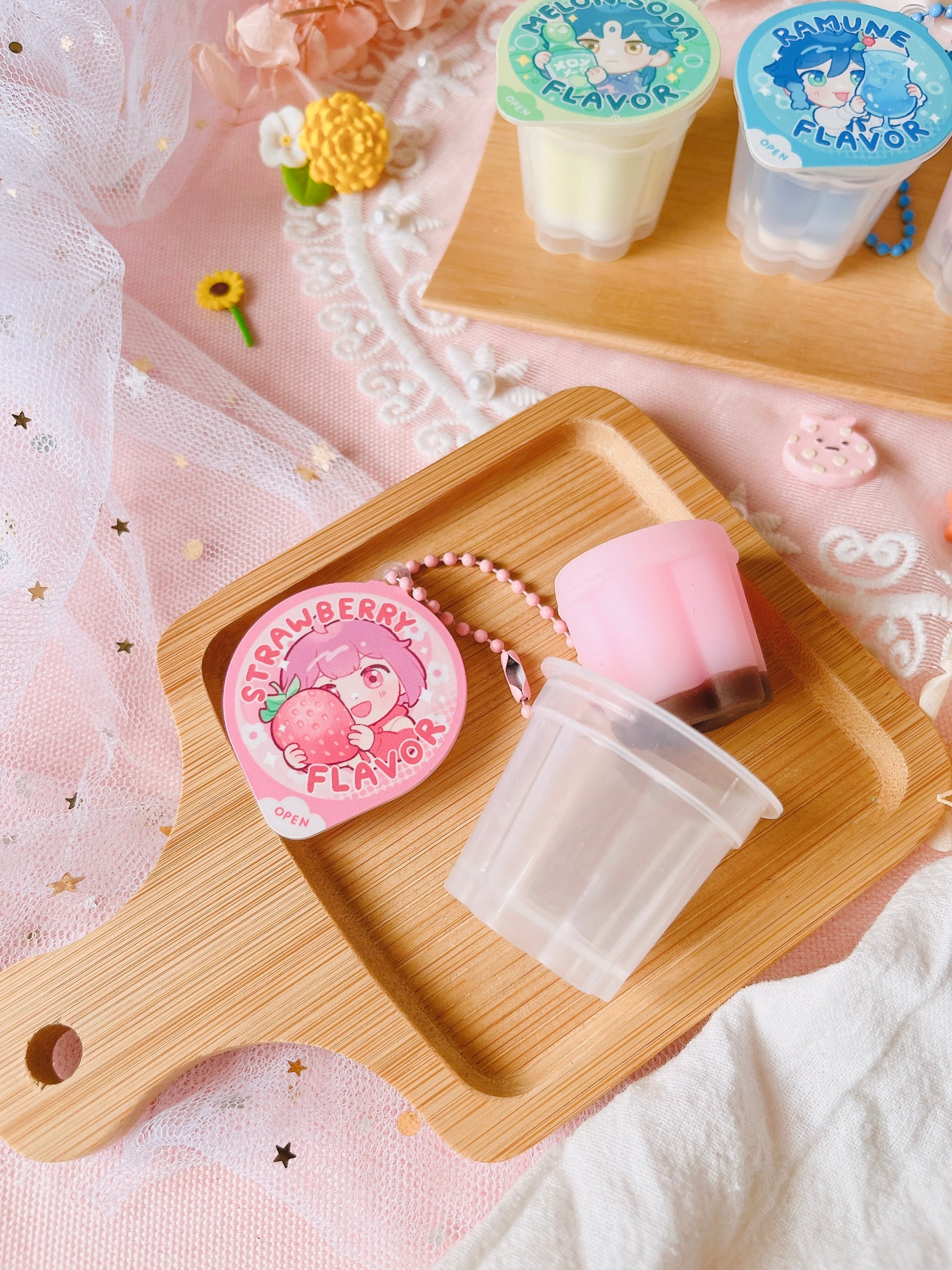 Not Edible!!! These are pudding charms with an openable lid to reveal a squishy silicone pudding~