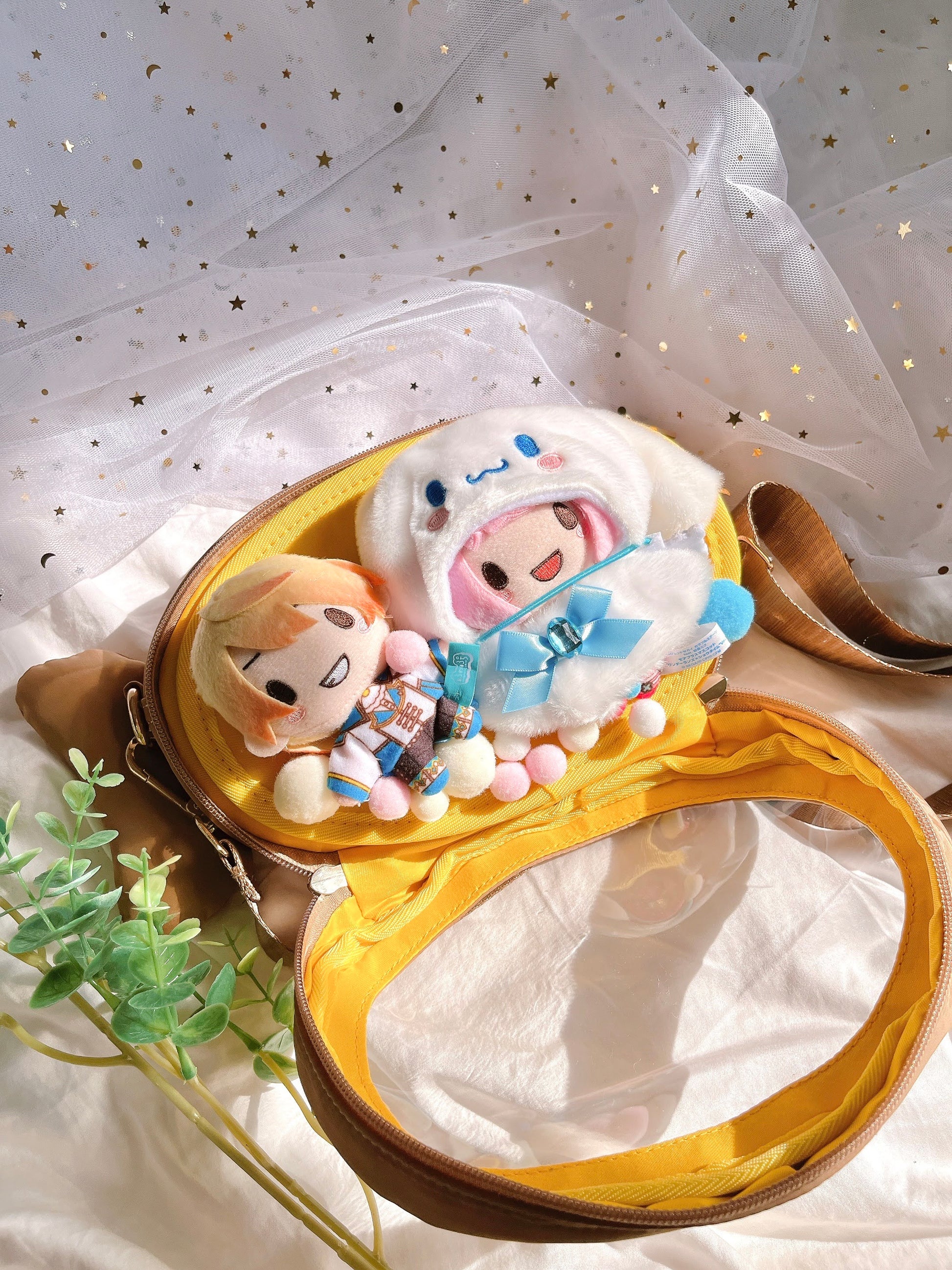 The long awaited taiyaki bags are finally instock! They come with 2 main compartments, the first is a front compartment for daily items, and the back is a larger compartment that acts as an itabag compartment! The ita side can fit 2 proseka nuis or any 10cm plushies, and has an ita insert included to attach charms and more~